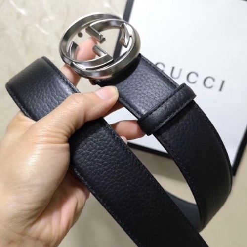 Gucci 3.8cm Wide grained Leather Belt With silver gg buckle