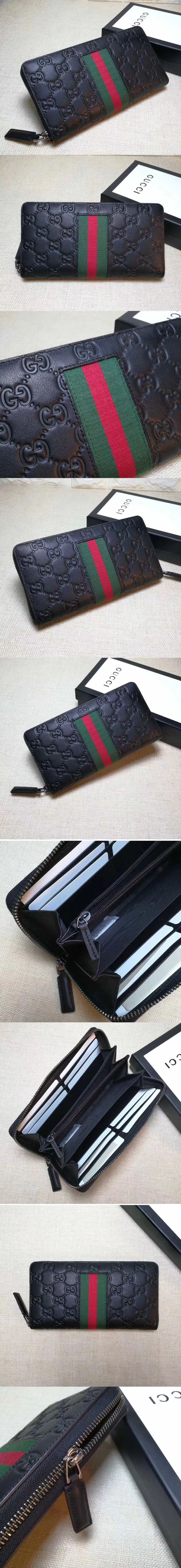A combination of two of Gucci’s most recognizable codes: the GG motif and the Web. This zip around wallet is made in heat debossed Gucci Signature with Gucci Web stripe detail.