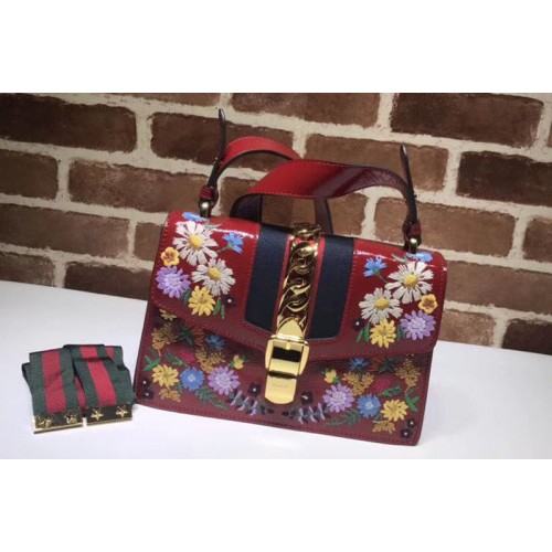 Gucci 421882 Sylvie embroidered small shoulder bags Red