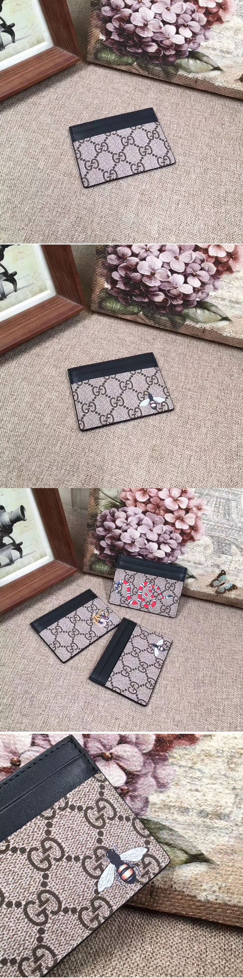 The bee is an archival code first introduced in Gucci ready-to-wear in the 1970s. Here, it is printed at the corner of a slim card case made in GG Supreme canvas, a material with low environmental impact.