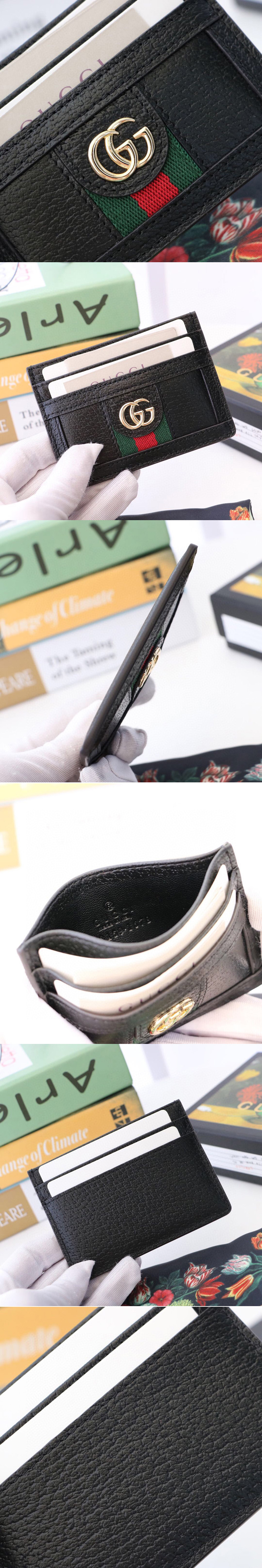 Gucci 523159 Ophidia card case Black leather With Web