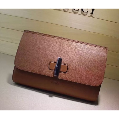 Gucci Bamboo Daily leather clutch 387220 2016 in coffee
