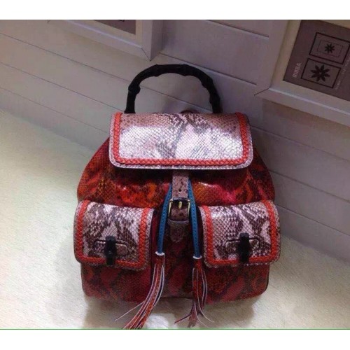 Gucci bamboo Python pattern backpack 370833 Orange/Blue
