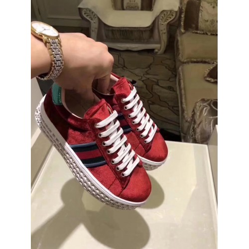Gucci Crystals Platform Web Ace Sneakers 505995 Velvet Red 2017
