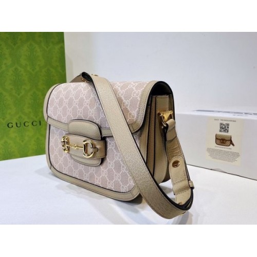 Gucci Horsebit 1955 Mini Crossbody Bag In White GG Canvas