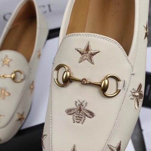 Embroidered with the signature insect motif amongst metallic stars, these Jordaan loafers from Gucci..