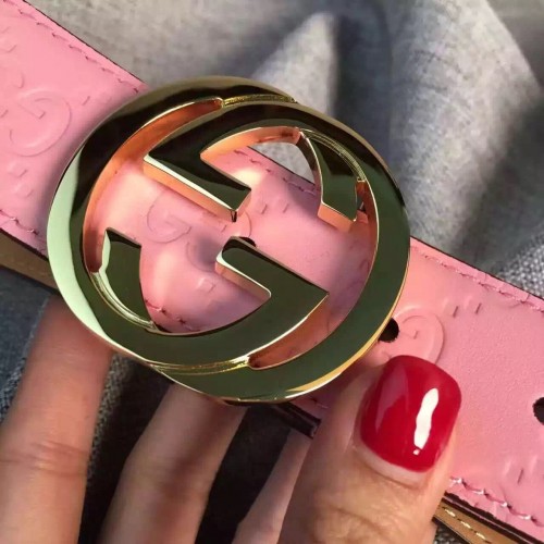 Our interlocking G buckle on our classic belt, made in heat debossed Gucci Signature leather resulting in a defined print with a firm texture.Gucci Signature leather with leather detailInterlocking G buckleHand-painted edges3.5 cm widthMade in Italy