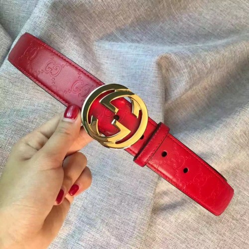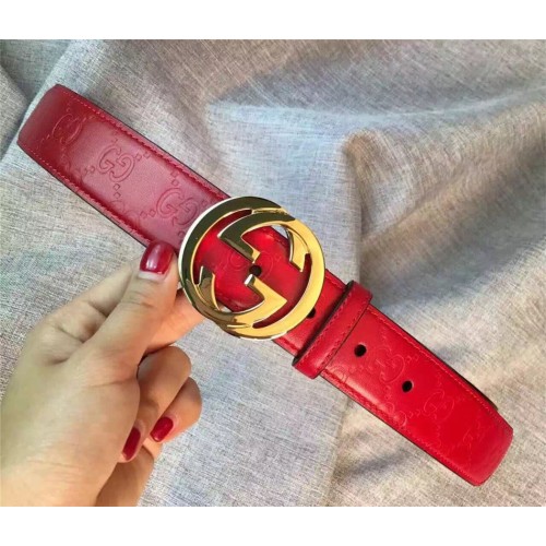 Our interlocking G buckle on our classic belt, made in heat debossed Gucci Signature leather resulting in a defined print with a firm texture.Gucci Signature leather with leather detailInterlocking G buckleHand-painted edges3.5 cm widthMade in Italy