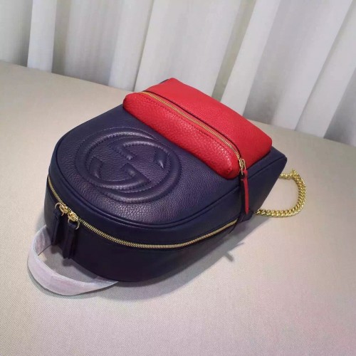 Gucci Soho leather chain backpack 431570 red and dark blue