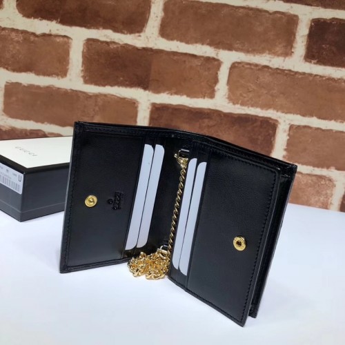 Gucci Vintage Web Rajah Chain Card Case Wallet 573790 Leather Black