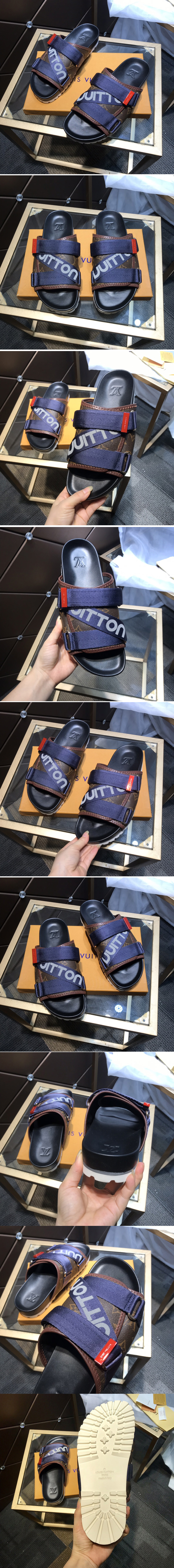 Louis Vuitton 1A5S85 LV Honolulu Mule in Damier Ebene Canvas With Blue