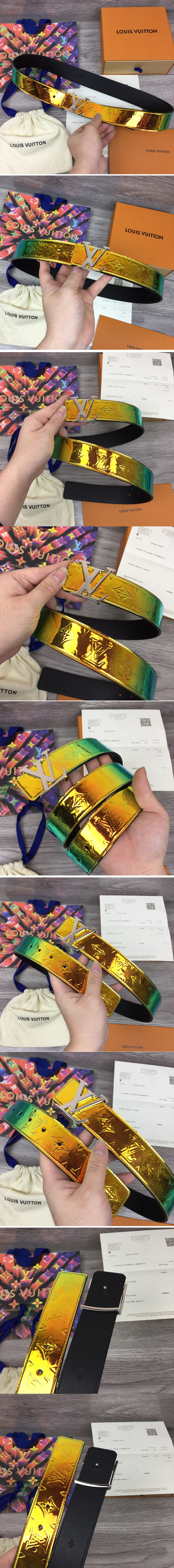 The LV Shape 40mm reversible belt is part of the new Prism capsule collection. Crafted from embossed Monogram Prism on one side and calf leather on the other, it is a new take on the LV Shape, which was launched in Spring-Summer 2019. It is completed by a striking LV Shape buckle in matte black hardware.