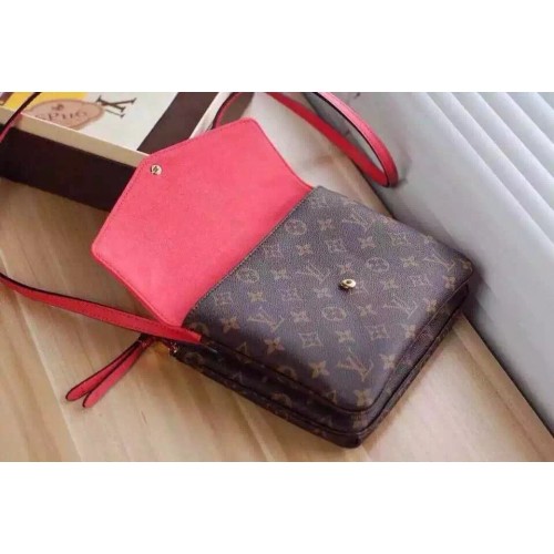 9.1 x 6.7 x 1.6 inches (Length x Height x Width) - Coated Monogram canvas and grained calf leather- Grained calf-leather adjustable shoulder strap- Calf-leather trim- Golden-brass hardware- Microfiber lining- Front compartment with flap closing system and snap button- Zipped back compartment- Central “secret” pocket with invisible magnet